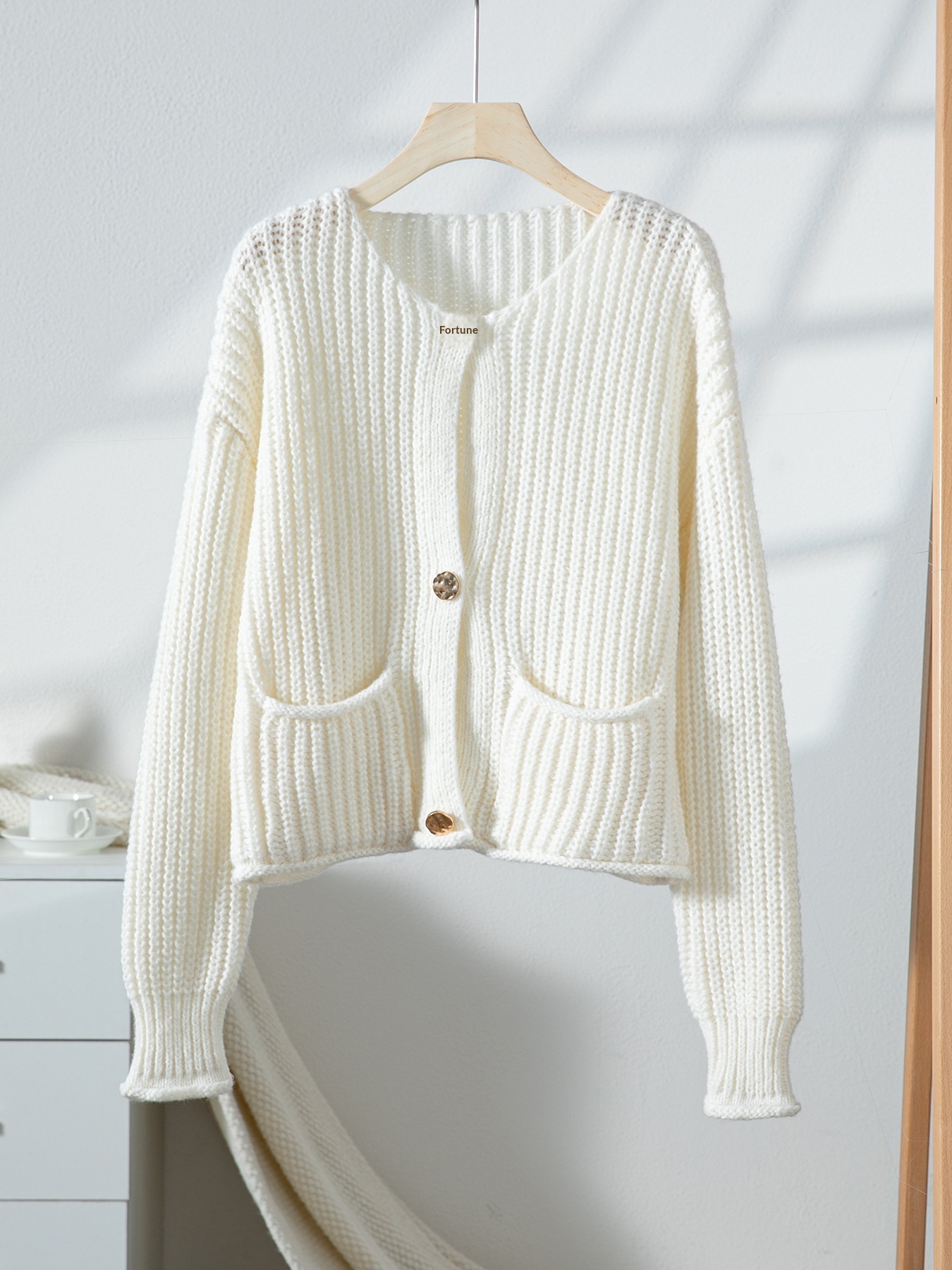 Women's Warm Knitted Sweater With Buttoned Pockets